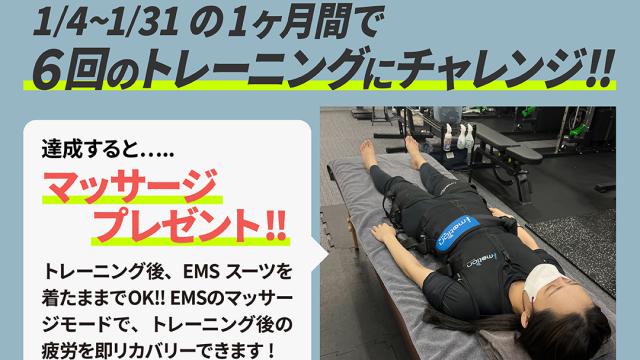 1月31日までに6回トレーニングに挑戦!「1 MONTH CHALLENGE」/時短でリラックス「EMSマッサージ」をお試しください♪